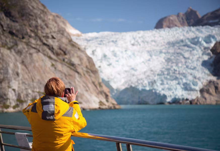 Explore Scoresby Sund, the world’s largest fjord system with vast icebergs.
