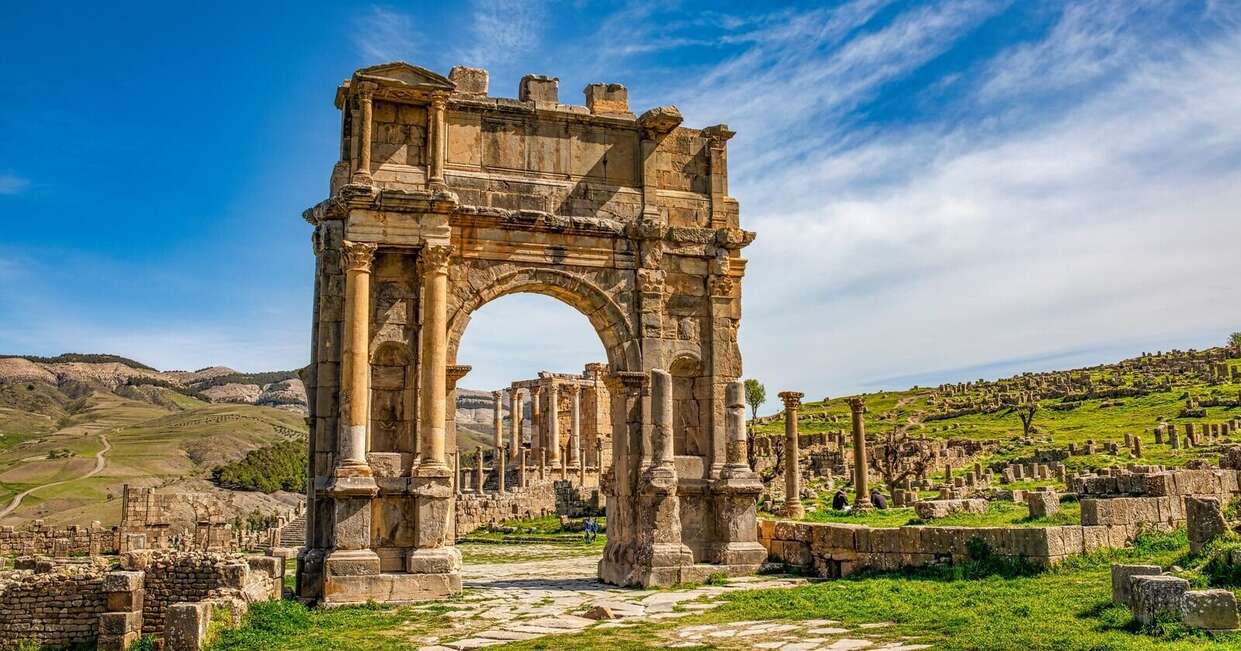 Explore Timgad’s grid-planned Roman city, forum, baths, and Triumphal Arch.