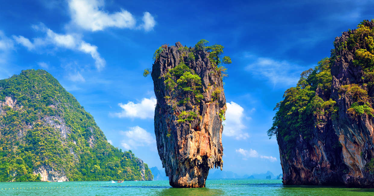 Cruise among limestone karsts of Phang Nga Bay.