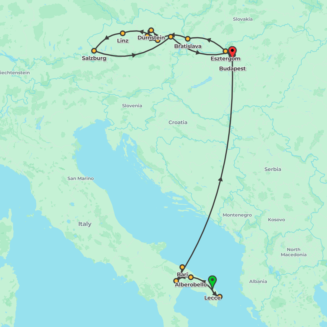 Discover southern Italy’s baroque gems and coastal towns before cruising the Blue Danube to Central Europe’s great capitals with expert-led tours, authentic local experiences and engaging evenings on board.