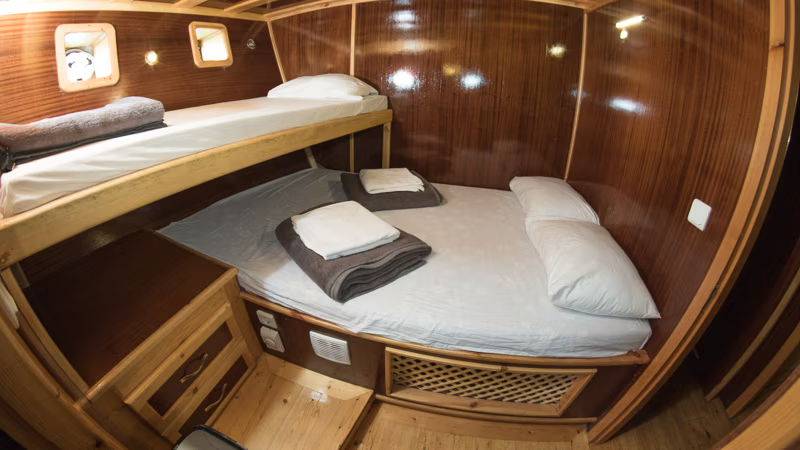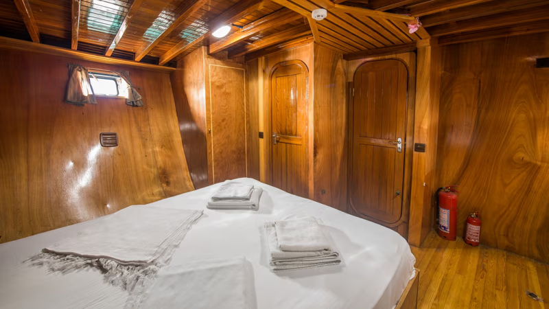 Spend seven nights aboard a traditional handmade wooden gulet in a double cabin. Between island stops, stretch out on the sun deck or settle into cushioned seating beneath the shaded aft deck. A dedicated captain and supporting crew ensure a comfortable stay throughout your week at sea.